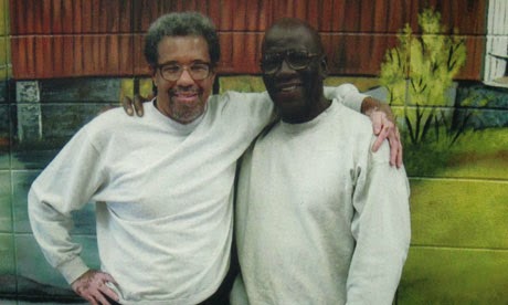 | (PHOTO: Albert Woodfox embraces Herman Wallace) |